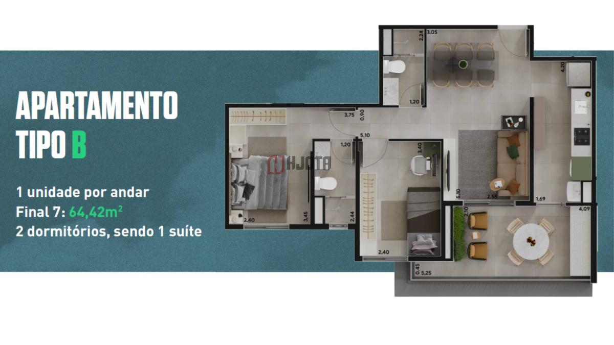 Apartamento em construção de 64,42m2 com sacada, 2 dormitórios sendo 1 suíte e 1 vaga de garagens (Fase obras até Out/2028)