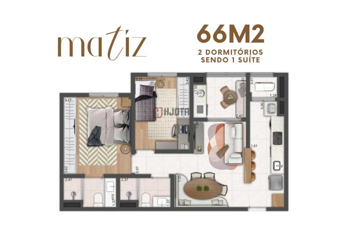 - 2 Dorms (1 Suíte) | 66 m²